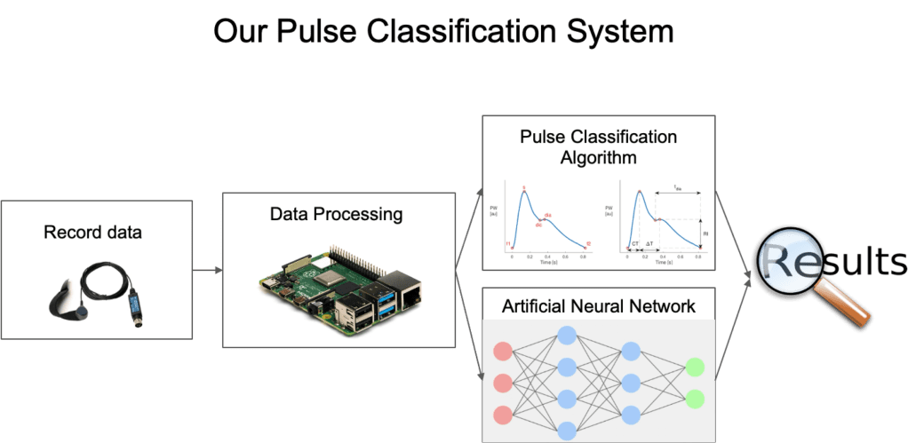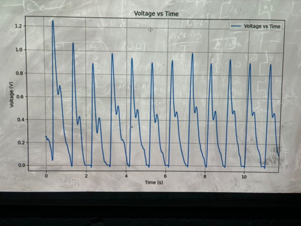 Building on the software team’s code, we refined the algorithm to more accurately detect peaks and analyze voltage amplitude ratios between pulses. To improve reliability, we added noise filtering to prevent irrelevant peaks from being counted and introduced a “ratio of change” metric to validate results and capture edge cases. We tested the algorithm on data from over 20 participants, and it now reliably identifies individual pulses while distinguishing healthy from unhealthy waveforms based on peak patterns and voltage ratios. See image below.