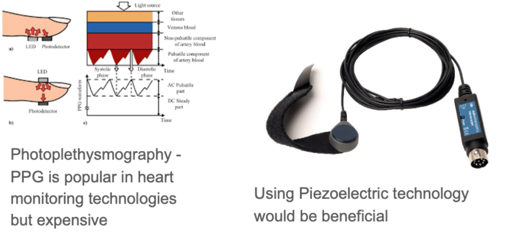 We chose a pulse tranducer because it is more accesible and affordable than PPG technology